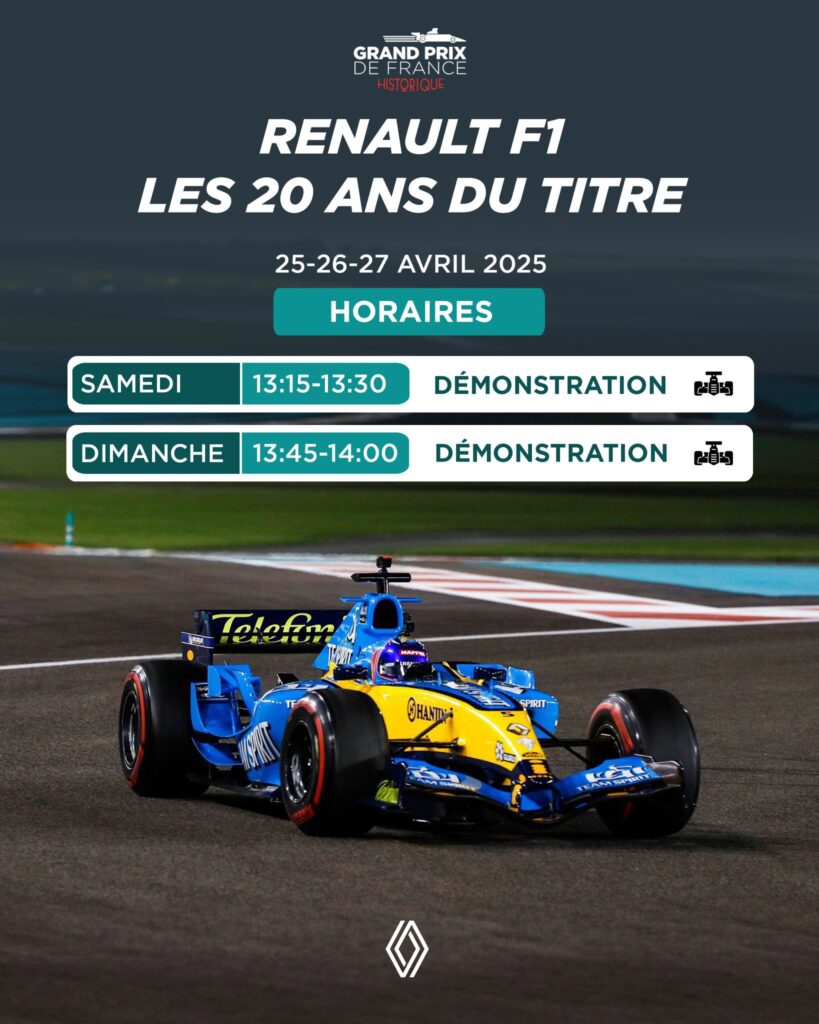 - Renault célèbrera les 20 ans de son premier titre de champion du monde en présence de la mythique R25 et de 16 autres modèles.